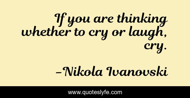This page presents the quote "If you are thinking whether to cry or laugh, cry.". Author of this quote is Nikola Ivanovski. This quote is about cry, laugh,.