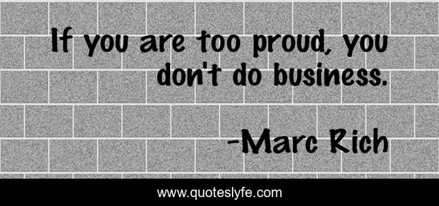 This page presents the quote "If you are too proud, you don't do business.". Author of this quote is Marc Rich. This quote is about proud, too,.