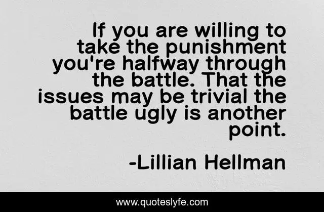 This page presents the quote "If you are willing to take the punishment you're halfway through the battle. That the issues may be trivial the battle ugly is another point.". Author of this quote is Lillian Hellman. This quote is about critics, criticism,.