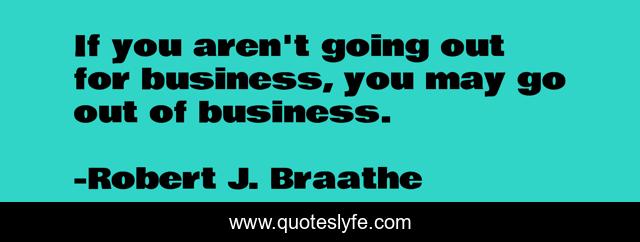 This page presents the quote "If you aren't going out for business, you may go out of business.". Author of this quote is Robert J. Braathe. .