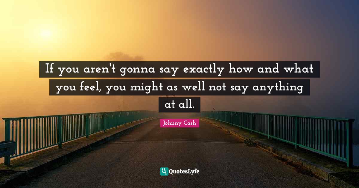 This page presents the quote "If you aren't gonna say exactly how and what you feel, you might as well not say anything at all.". Author of this quote is Johnny Cash. This quote is about say anything, wells, might,.