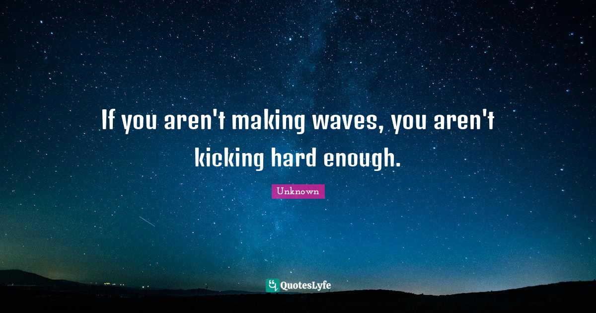 This page presents the quote "If you aren't making waves, you aren't kicking hard enough.". Author of this quote is Unknown. This quote is about inspirational, inspiration,.
