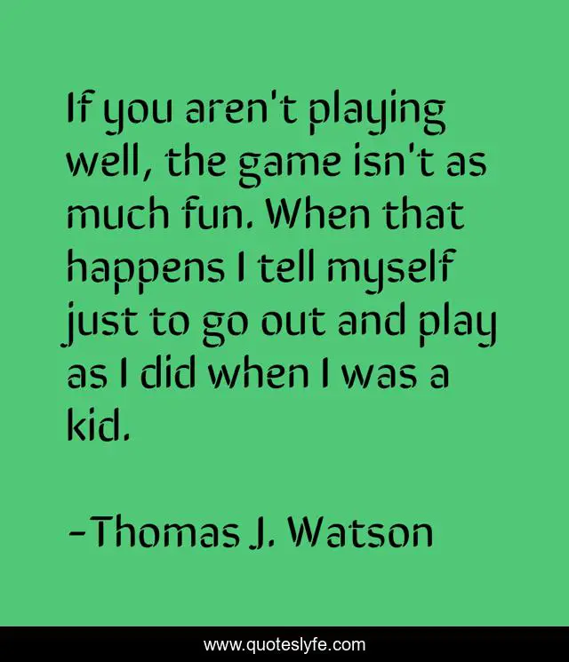 This page presents the quote "If you aren't playing well, the game isn't as much fun. When that happens I tell myself just to go out and play as I did when I was a kid.". Author of this quote is Thomas J. Watson. This quote is about fun, myself, game,.