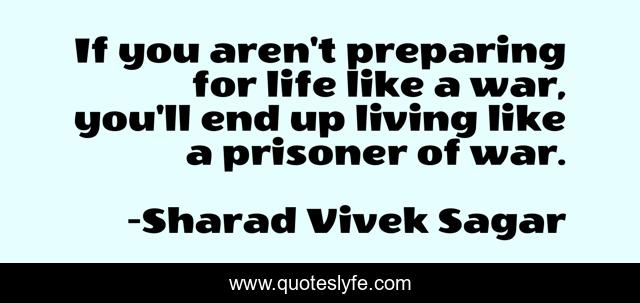 This page presents the quote "If you aren't preparing for life like a war, you'll end up living like a prisoner of war.". Author of this quote is Sharad Vivek Sagar. This quote is about life, strategy, preparation, inspirational, enthusiasm, war,.