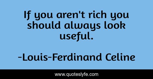 This page presents the quote "If you aren't rich you should always look useful.". Author of this quote is Louis-Ferdinand Celine. .