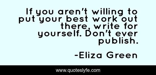 This page presents the quote "If you aren't willing to put your best work out there, write for yourself. Don't ever publish.". Author of this quote is Eliza Green. This quote is about writing-advice, writing-tips,.