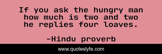 This page presents the quote "If you ask the hungry man how much is two and two he replies four loaves.". Author of this quote is Hindu proverb. .