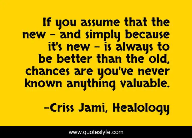 "Criss Jami, Healology Quotes." Quoteslyfe.com, 2025. Mon. 15 Dec. 2025. <https://www.quoteslyfe.com/quote/If-you-assume-that-the-new-and-176173>.