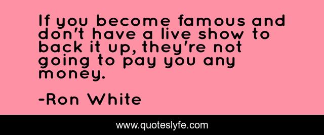 This page presents the quote "If you become famous and don't have a live show to back it up, they're not going to pay you any money.". Author of this quote is Ron White. This quote is about money, live,.