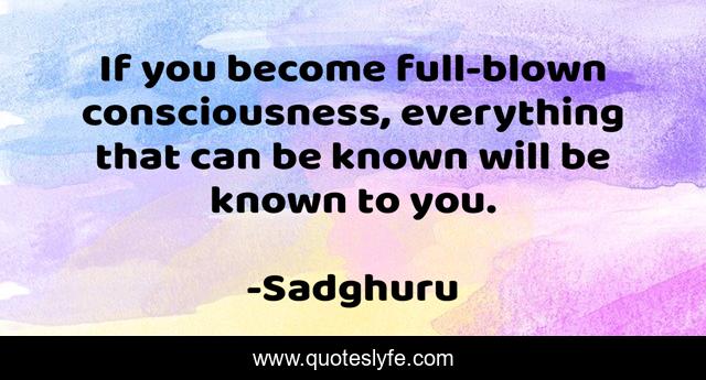 This page presents the quote "If you become full-blown consciousness, everything that can be known will be known to you.". Author of this quote is Sadghuru. This quote is about all-knowing, consciousness,.
