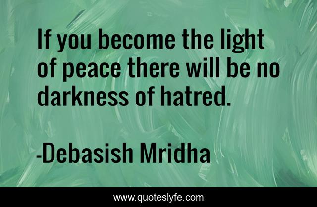 This page presents the quote "If you become the light of peace there will be no darkness of hatred.". Author of this quote is Debasish Mridha. This quote is about life, love, knowledge, inspirational, intelligence, philosophy, wisdom, quotes, affection,.