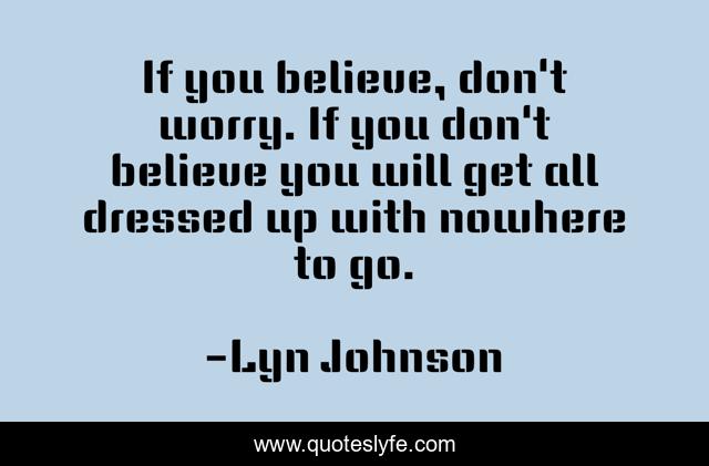 This page presents the quote "If you believe, don't worry. If you don't believe you will get all dressed up with nowhere to go.". Author of this quote is Lyn Johnson. .