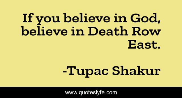 This page presents the quote "If you believe in God, believe in Death Row East.". Author of this quote is Tupac Shakur. This quote is about god, believe,.