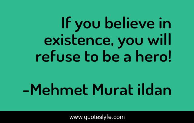 This page presents the quote "If you believe in existence, you will refuse to be a hero!". Author of this quote is Mehmet Murat ildan. .