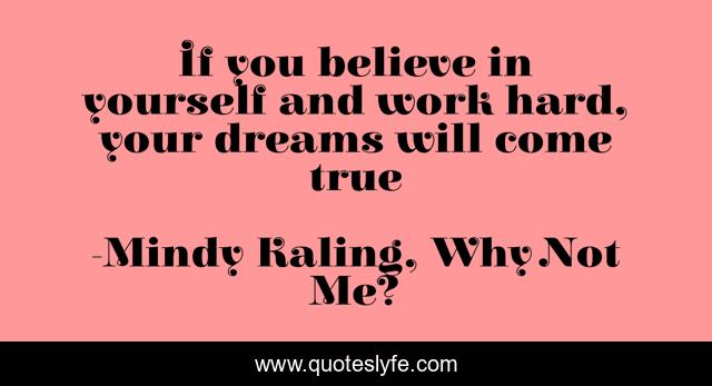 This page presents the quote "If you believe in yourself and work hard, your dreams will come true". Author of this quote is Mindy Kaling, Why Not Me?. This quote is about work, dreams, dreaming,.