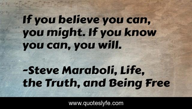 This page presents the quote "If you believe you can, you might. If you know you can, you will.". Author of this quote is Steve Maraboli, Life, the Truth, and Being Free. This quote is about knowing, life, success, positive, motivational, confidence, optimistic, inspirational, action,.