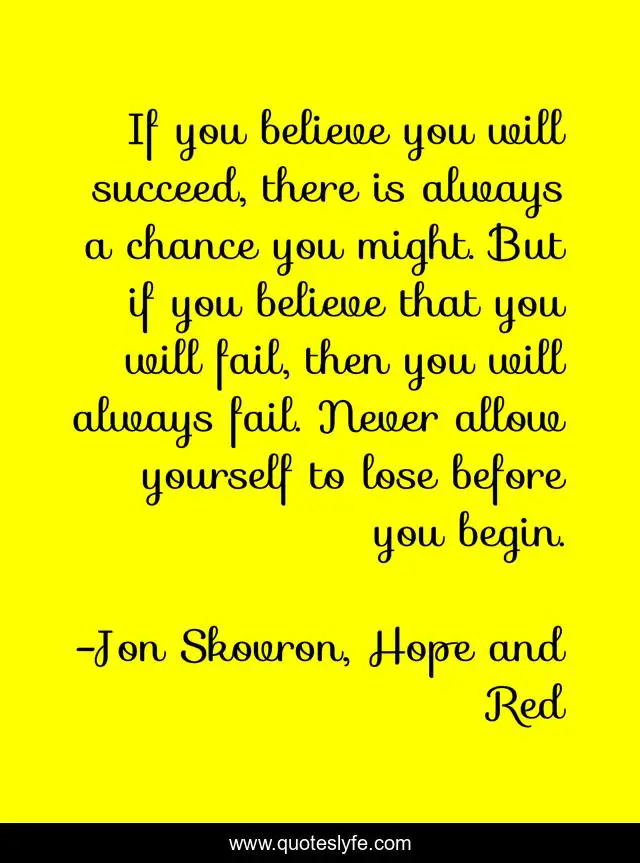 "Jon Skovron, Hope and Red Quotes." Quoteslyfe.com, 2025. Mon. 08 Dec. 2025. <https://www.quoteslyfe.com/quote/If-you-believe-you-will-succeed-there-247959>.