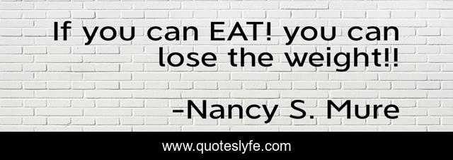 This page presents the quote "If you can EAT! you can lose the weight!!". Author of this quote is Nancy S. Mure. This quote is about holistic, fitness-inspiration, mure, alternative-health, weight-loss, health,.