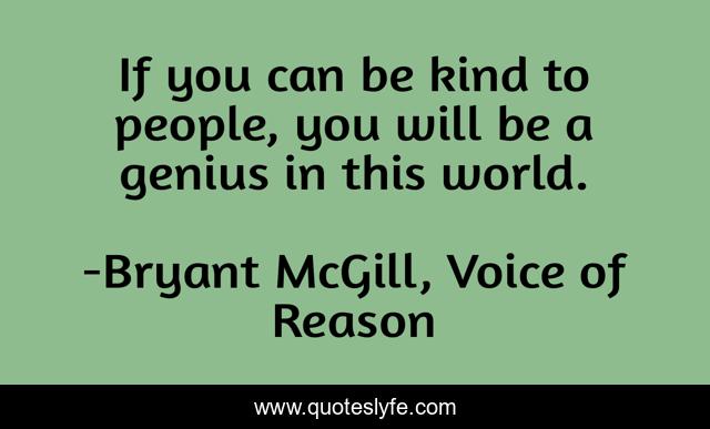 This page presents the quote "If you can be kind to people, you will be a genius in this world.". Author of this quote is Bryant McGill, Voice of Reason. This quote is about genius, kindness, serving,.