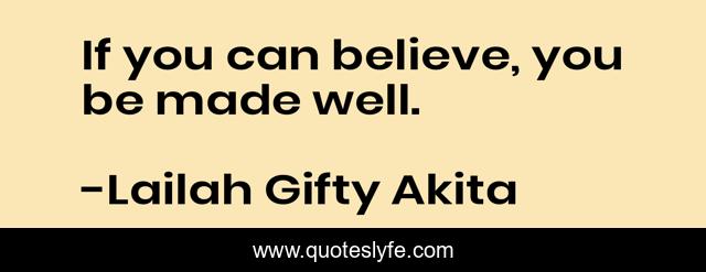 This page presents the quote "If you can believe, you be made well.". Author of this quote is Lailah Gifty Akita. This quote is about faith, believe, well, healing, hope,.