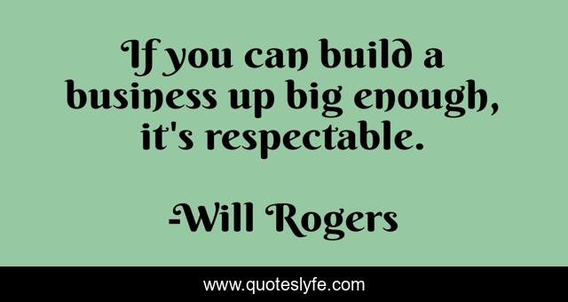 This page presents the quote "If you can build a business up big enough, it's respectable.". Author of this quote is Will Rogers. This quote is about build, up,.