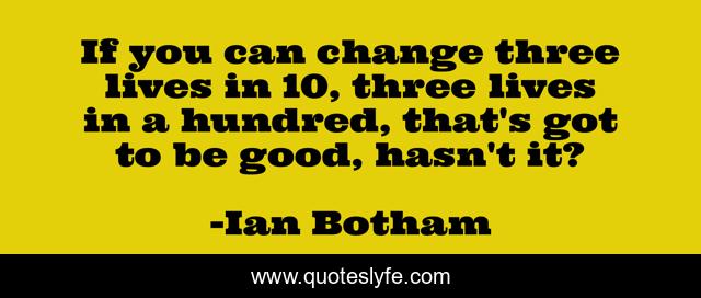 This page presents the quote "If you can change three lives in 10, three lives in a hundred, that's got to be good, hasn't it?". Author of this quote is Ian Botham. This quote is about good, three,.