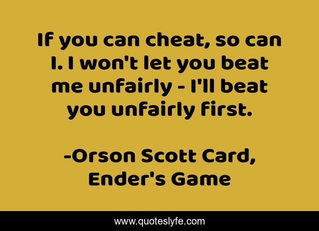 This page presents the quote "If you can cheat, so can I. I won't let you beat me unfairly - I'll beat you unfairly first.". Author of this quote is Orson Scott Card, Ender's Game. This quote is about cheating, winning,.