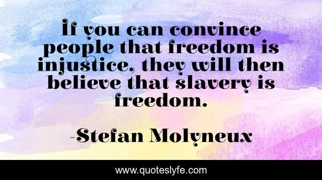 "Stefan Molyneux Quotes." Quoteslyfe.com, 2025. Mon. 08 Dec. 2025. <https://www.quoteslyfe.com/quote/If-you-can-convince-people-that-freedom-7709>.