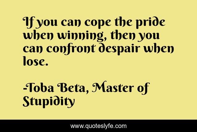 This page presents the quote "If you can cope the pride when winning, then you can confront despair when lose.". Author of this quote is Toba Beta, Master of Stupidity. This quote is about lose, win, pride, despair,.