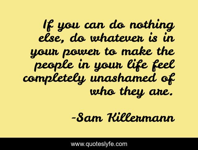 This page presents the quote "If you can do nothing else, do whatever is in your power to make the people in your life feel completely unashamed of who they are.". Author of this quote is Sam Killermann. This quote is about social-justice, love, power, support, shame, responsibility, friendship, affection,.