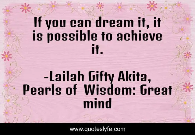 "Lailah Gifty Akita, Pearls of Wisdom: Great mind Quotes." Quoteslyfe.com, 2025. Mon. 08 Dec. 2025. <https://www.quoteslyfe.com/quote/If-you-can-dream-it-it-is-131132>.