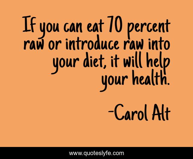 This page presents the quote "If you can eat 70 percent raw or introduce raw into your diet, it will help your health.". Author of this quote is Carol Alt. This quote is about health, help,.