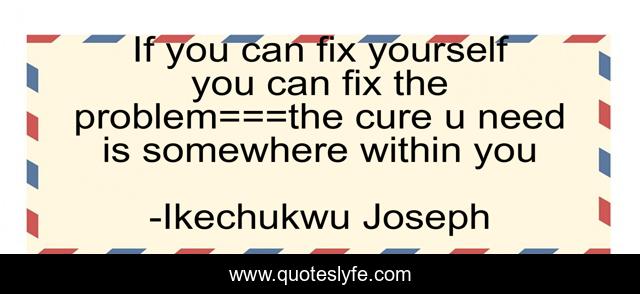 This page presents the quote "If you can fix yourself you can fix the problem===the cure u need is somewhere within you". Author of this quote is Ikechukwu Joseph. This quote is about christianity, self-help,.