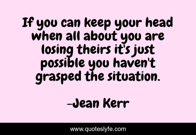 This page presents the quote "If you can keep your head when all about you are losing theirs it's just possible you haven't grasped the situation.". Author of this quote is Jean Kerr. .