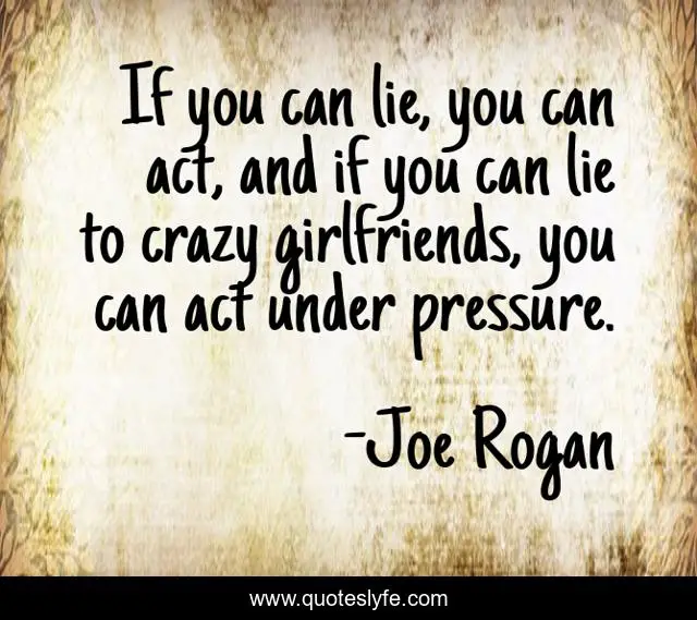 This page presents the quote "If you can lie, you can act, and if you can lie to crazy girlfriends, you can act under pressure.". Author of this quote is Joe Rogan. This quote is about lie, crazy, pressure,.