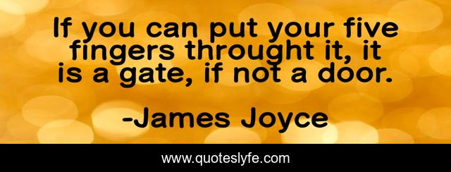 This page presents the quote "If you can put your five fingers throught it, it is a gate, if not a door.". Author of this quote is James Joyce. .