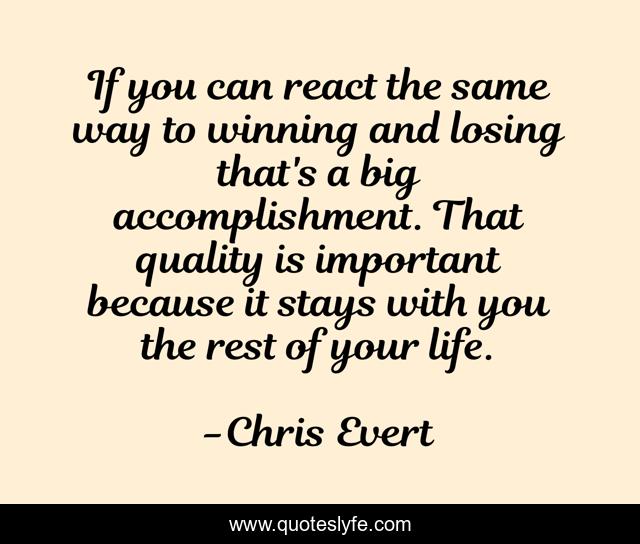 This page presents the quote "If you can react the same way to winning and losing that's a big accomplishment. That quality is important because it stays with you the rest of your life.". Author of this quote is Chris Evert. .