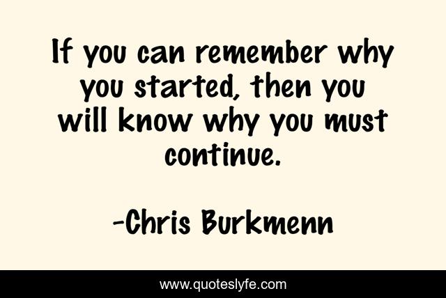 "Chris Burkmenn Quotes." Quoteslyfe.com, 2025. Fri. 05 Dec. 2025. <https://www.quoteslyfe.com/quote/If-you-can-remember-why-you-started-88956>.