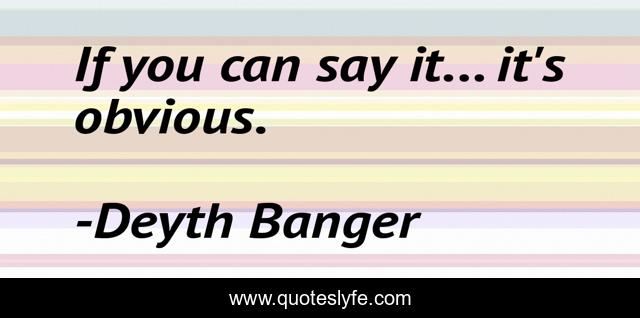 This page presents the quote "If you can say it... it's obvious.". Author of this quote is Deyth Banger. This quote is about it, obvious, can, logic,.