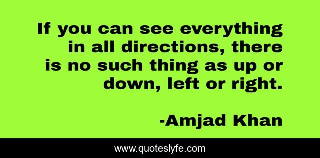 This page presents the quote "If you can see everything in all directions, there is no such thing as up or down, left or right.". Author of this quote is Amjad Khan. This quote is about enthusiasm, direction, inspirational, vision,.