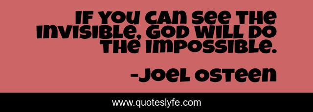 This page presents the quote "If you can see the invisible, God will do the impossible.". Author of this quote is Joel Osteen. .