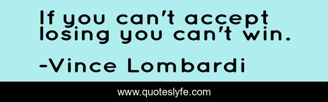 This page presents the quote "If you can't accept losing you can't win.". Author of this quote is Vince Lombardi. .