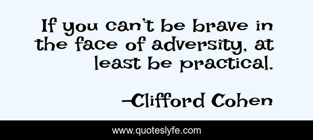 This page presents the quote "If you can’t be brave in the face of adversity, at least be practical.". Author of this quote is Clifford Cohen. This quote is about practicality, dealing-with-adversity, clear-thinking, courage, bravery, grace-under-pressure, adversity,.