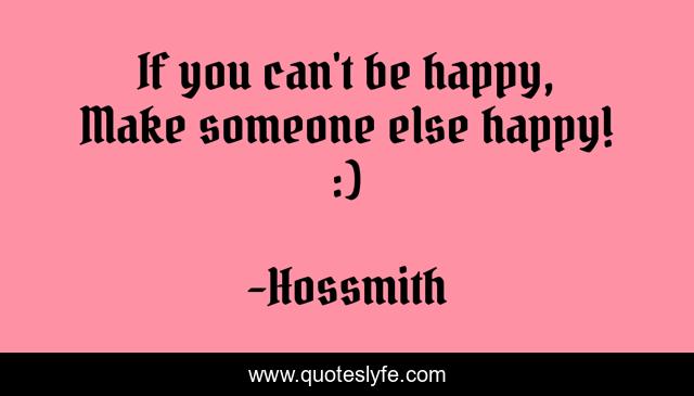 This page presents the quote "If you can't be happy, Make someone else happy! :)". Author of this quote is Hossmith. This quote is about love, happiness, affection, happy,.