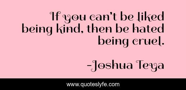 This page presents the quote "If you can't be liked being kind, then be hated being cruel.". Author of this quote is Joshua Teya. This quote is about moral, life, self-awareness, goodness,.