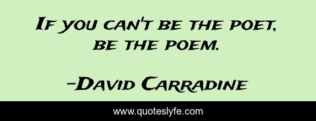 This page presents the quote "If you can't be the poet, be the poem.". Author of this quote is David Carradine. This quote is about quote, quotes, poetry, writing,.