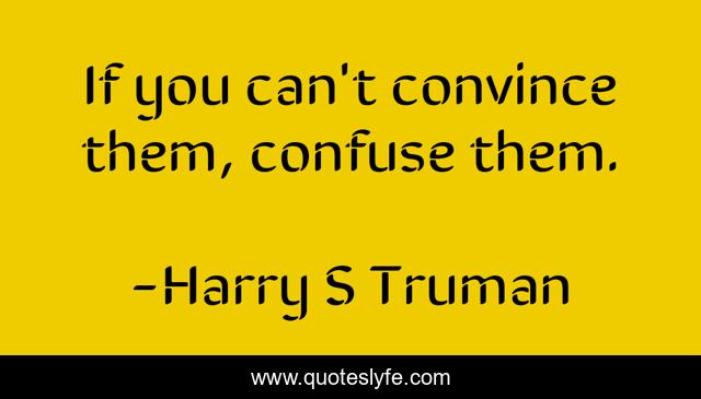 This page presents the quote "If you can't convince them, confuse them.". Author of this quote is Harry S Truman. This quote is about convince, confuse,.