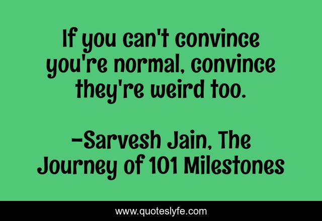 This page presents the quote "If you can't convince you're normal, convince they're weird too.". Author of this quote is Sarvesh Jain, The Journey of 101 Milestones. .