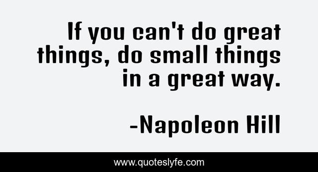 This page presents the quote "If you can't do great things, do small things in a great way.". Author of this quote is Napoleon Hill. This quote is about enthusiasm, achievement, inspirational,.