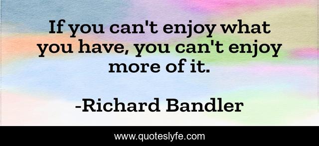 "Richard Bandler Quotes." Quoteslyfe.com, 2025. Fri. 05 Dec. 2025. <https://www.quoteslyfe.com/quote/If-you-can-t-enjoy-what-you-14086>.